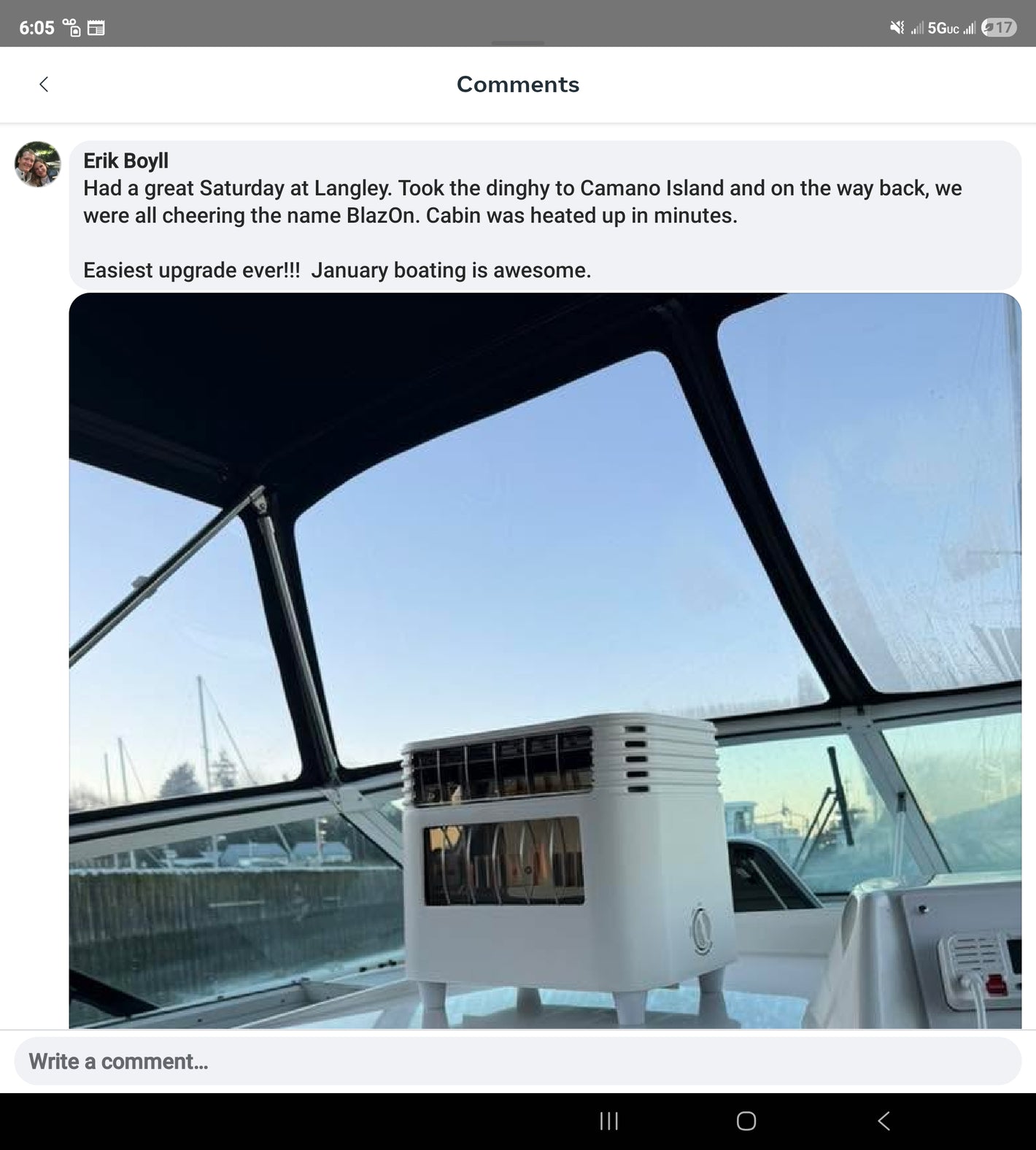 Warm up your adventures on the water with EMBER — the marine-safe, self-powered heater designed for life aboard. From powerboats to sailboats, EMBER is built to withstand wind and movement, delivering stable, efficient heat even underway. Designed for tight spaces and cozy cockpits, it adds ambiance to your deck without the hazard. Plus, you’ll keep devices powered with USB charging and 5V ports — so you're always adventure-ready.
