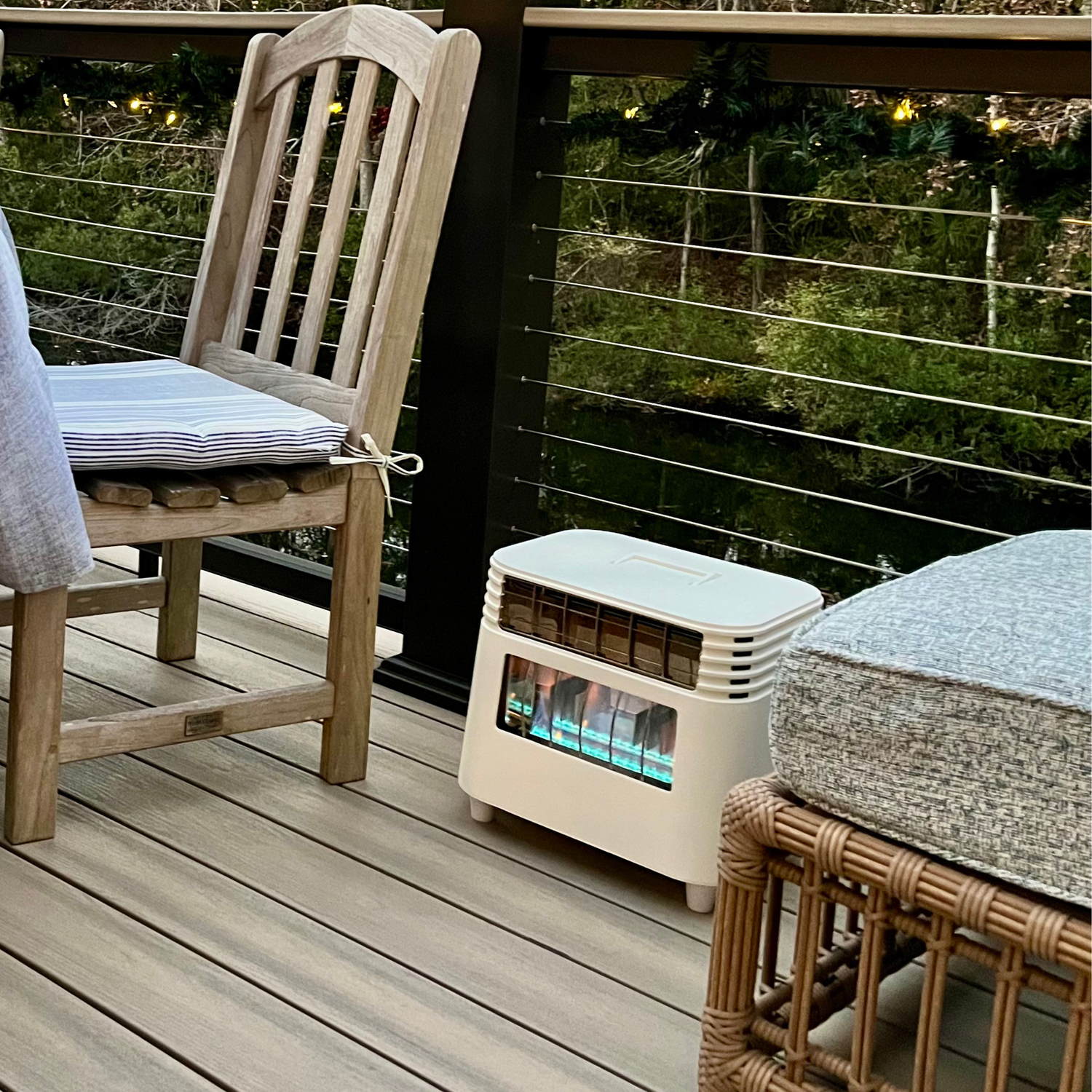 Extend your season with a BlazOn heater that combines a midcentury design, stunning 18K BTU blue propane flame and a powerful whisper quiet blower that directs 100% of the heat up to 8 feet.